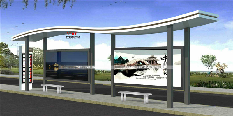 板,结实耐用、美观大气,是常用的公交站台款式。