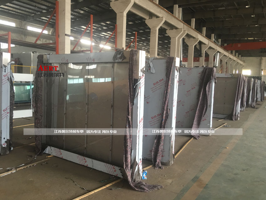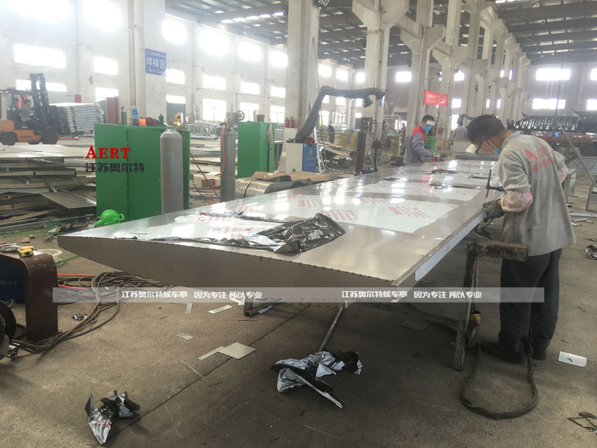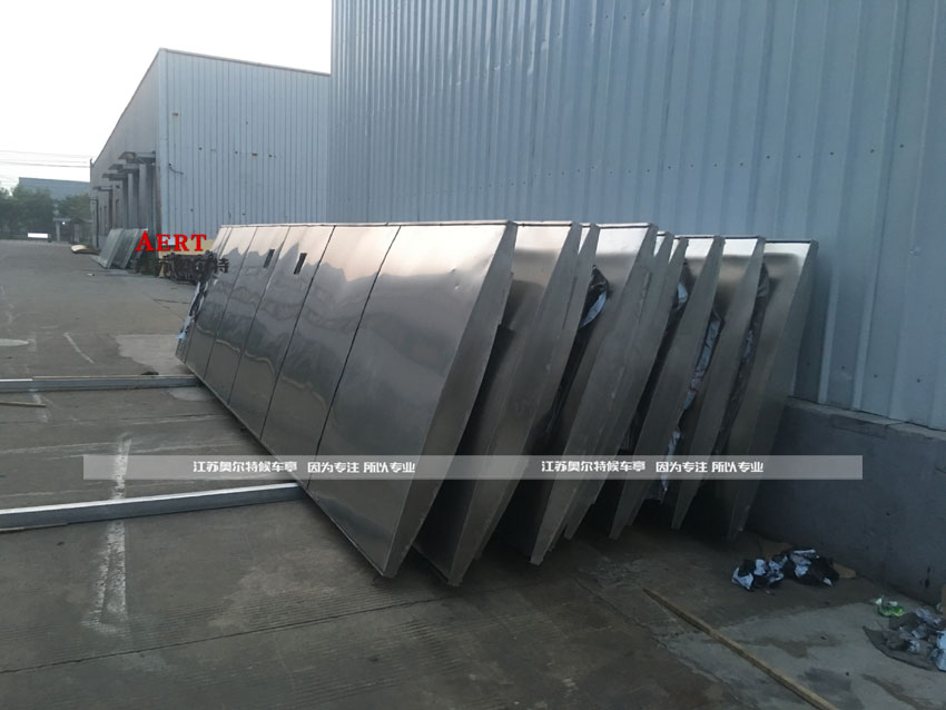 2、顶部遮阳挡雨上部采用0.8mm不锈钢板封盖,下部采用1.0不锈钢板封闭。
