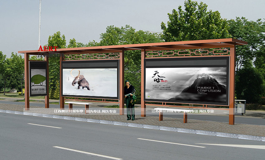 那么乡镇候车亭应该如何设计、制作呢?农村候车亭要以简约风格为主,与城市相比,农村道路较为狭窄、客流量同时也相对较少,诸如港湾候车亭、太阳能候车亭、大型候车亭便没有用武之地,简约候车亭以单个箱体为方,材质首选镀锌钢板、颜色多选绿色为主色调,与乡村风貌较为吻合,且层次分明,简洁明快;农村候车亭的长度可以根据客流量来设计,一般情况能容纳2辆位置即可,高度一般在2.4-2.8米为宜;宽度宜设计为50-100公分,一定要考虑到防雨防晒等因素;农村候车亭间距通常设置在500至800米之间,城乡结合部以及学校附近的候车亭间距则可以相对短一些,这样可实现换乘更便利些!