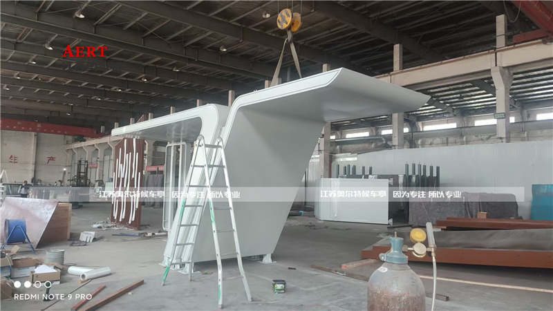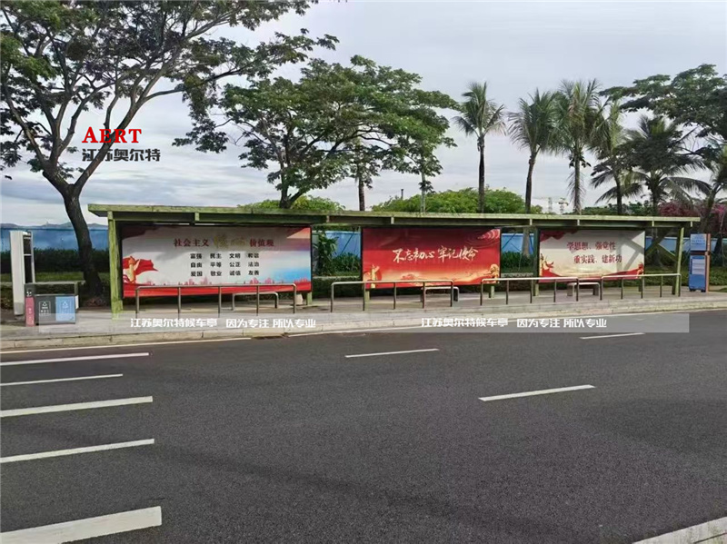 海南异型木纹漆公交候车亭发货案例
